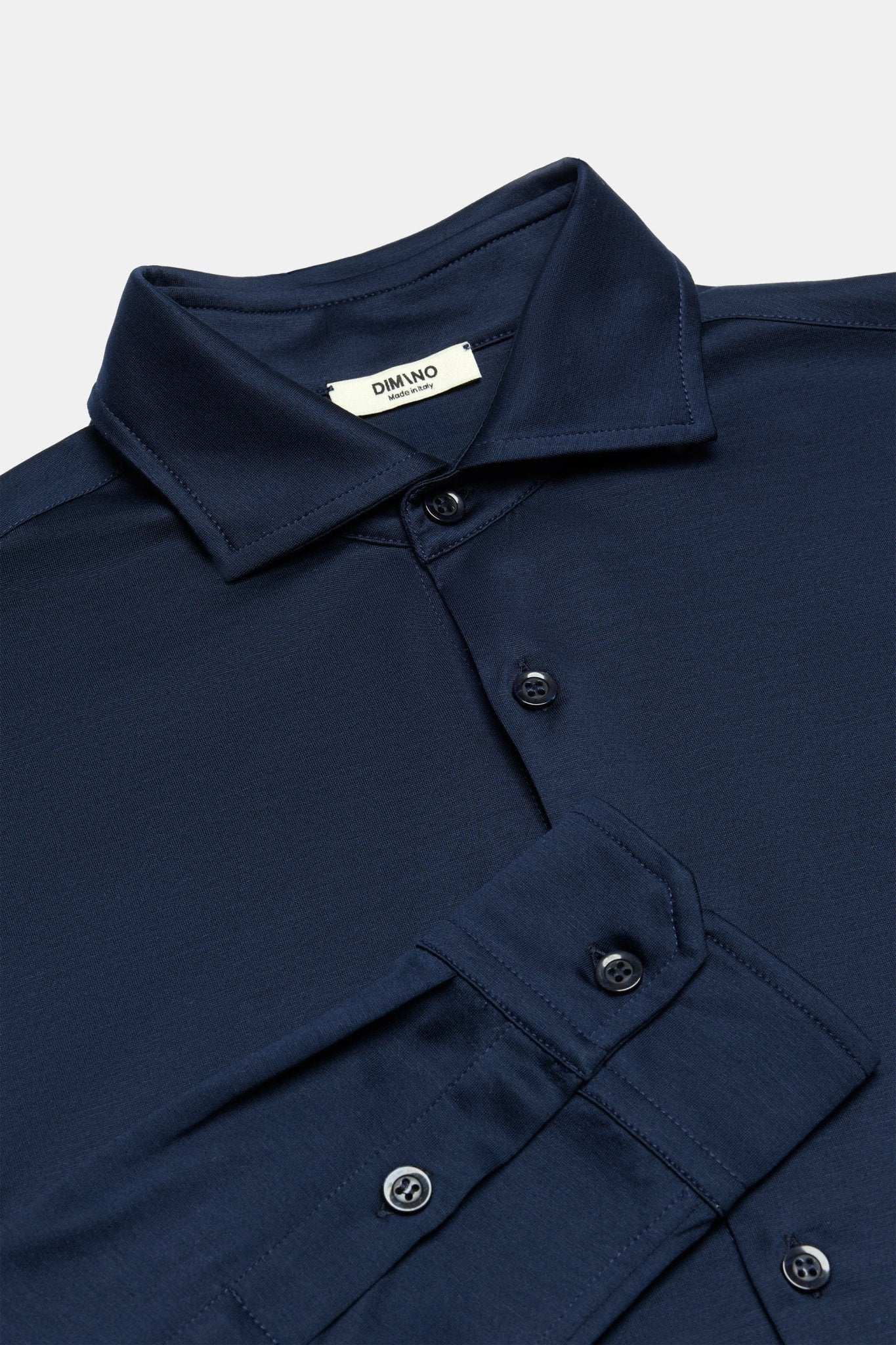 This beautiful dark blue formal shirt is perfect for fashion-conscious men. The slim fit creates a streamlined silhouette that is flattering and comfortable to wear. Made in Italy with high-quality materials and craftsmanship, this shirt is durable and luxurious. The shiny finish gives a chic look to the dark blue color. Suitable for any occasion. Our shirts can be worn casually with jeans, or elegantly with trousers and laofers. No matter the style, this shirt is sure to turn heads and make you stand out.